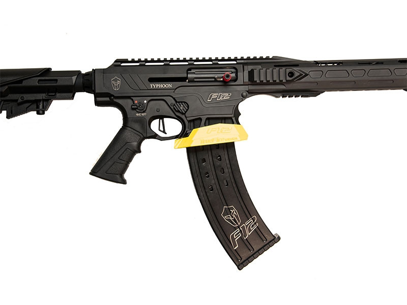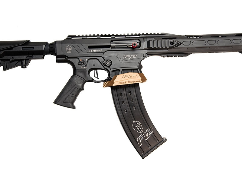 The Typhoon F12 Flared Magwell fits standard Typhoon F12 lower receivers. Installation is straightforward and typically completed in minutes with basic tools. If you’re unsure about fitment, have a qualified armourer install and check the part. Always ensure the firearm is unloaded and safe before fitting.
